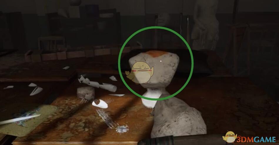 半身:头掉下来的石膏像,这尊放在桌上一定是有人搬过来。