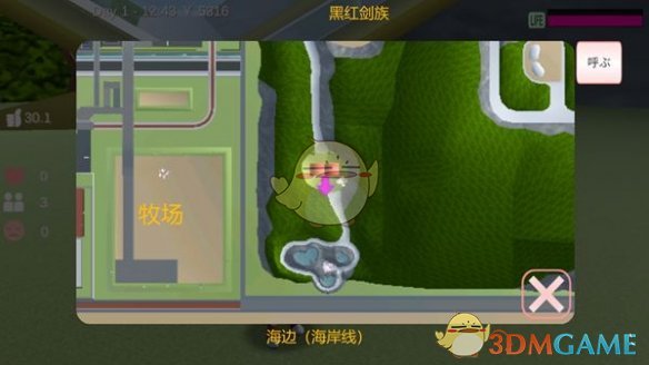 1、第一步需要先打开菜单的传送功能传送到牧场的位置。接着就使用飞行道具往牧场旁边的山上飞过去。