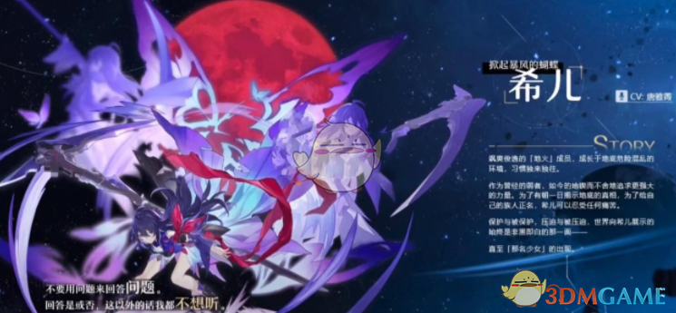 【希儿】同样也与之前的崩坏三设备定有所不同,她在新作中是地火成员,自小在地底的危险环境下长大,喜好独来独往,而其角色介绍中的“那名少女”估计就是布洛妮娅了。