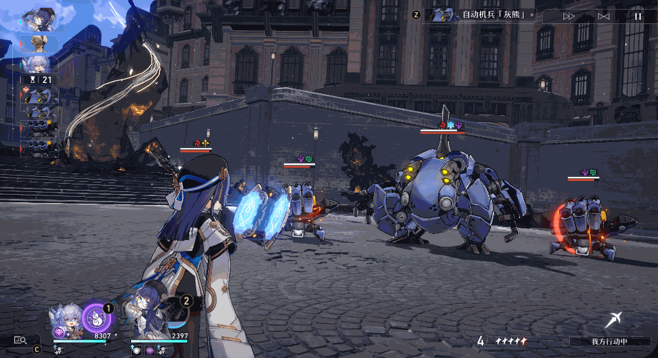 立即攻击敌人,进入战斗后对敌方随机单位造成等同于佩拉80%攻击力的冰属性伤害,同时有100%的基础概率使敌方每个单体目标防御力降低20%,持续2回合。