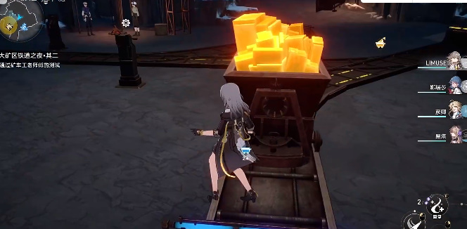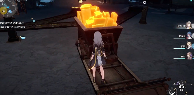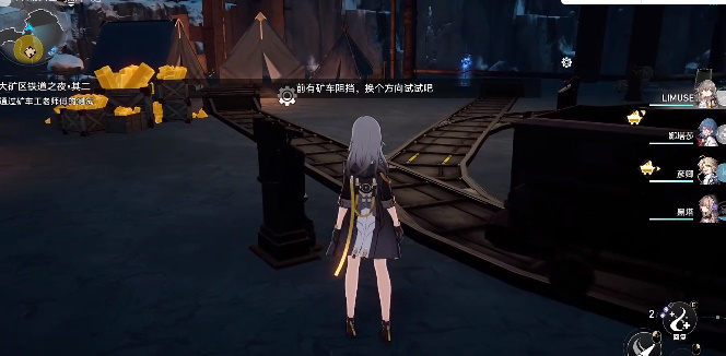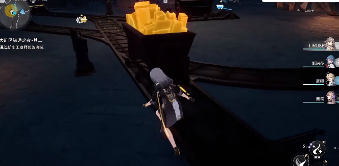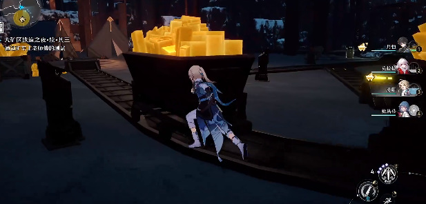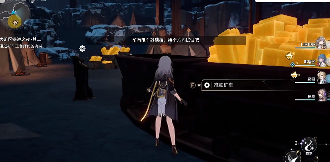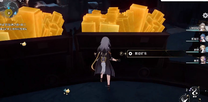 2、然后点击装满矿车,装满之后在推动一下,然后再次来到黄色这边的变轨装置推动一下,在推动一下矿车;
