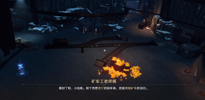 6、再次推动刚刚的变轨装置,然后去推动有矿的矿车,这个第二阶段的挑战就算完成了,接着继续跟矿工师傅对话领取奖励。