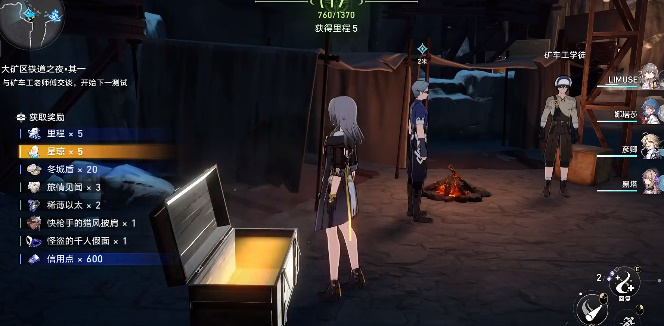 4、然后来到右边的变轨装置进行变轨,在推动一下空矿车,第一个挑战就结束了,对话完成之后领取战利品,然后开始第二处的解密。