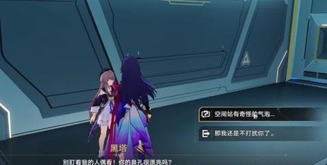 2、大家找到人偶后,与之交谈,询问“气泡”问题,在对话最后大家选择“现在我能触碰气泡了吗”
