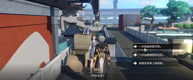 1、首先玩家需要来到星搓海中枢偏东北方向的桥中间,在桥上面可以看到一只忧郁的机巧鸟,这只机巧鸟想要自毁,玩家需要上前交谈;第一只:懒惰