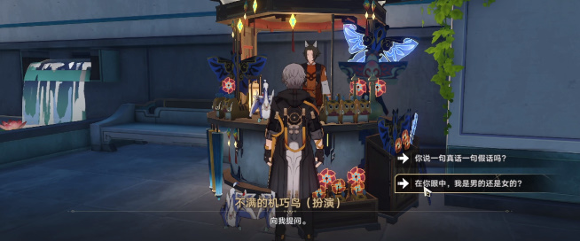 2、小鸟表示给玩家出一个题目,答对了就回去,打错了玩家就输了,小鸟会直说真话或者只说假话,或者是一真一假,玩家需要提问两个问题;