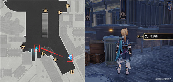 2、第二个需要来到行政区如图所示的位置,调查垃圾桶,即可获得垃圾之王的馈赠,一枚古老的硬币。