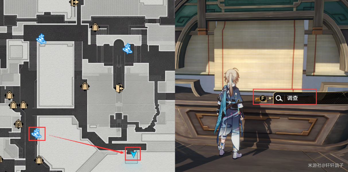 1)星槎海中枢:来到如图所示的位置,选择调查。得到脏兮兮的零件,提示找复仇年轻人。