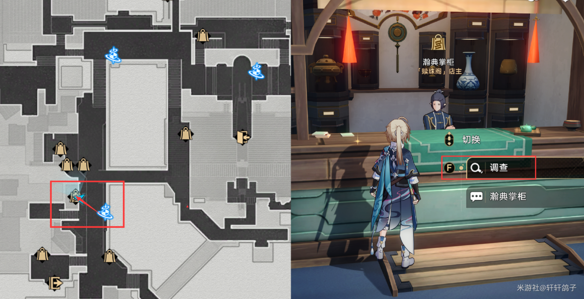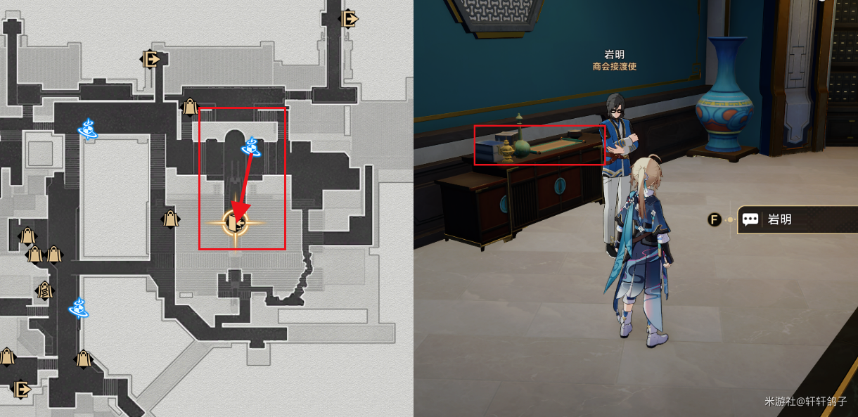 4、星槎海中枢:第一步,来到司辰宫,调查桌子上的闪光,会被岩明阻止后训斥。