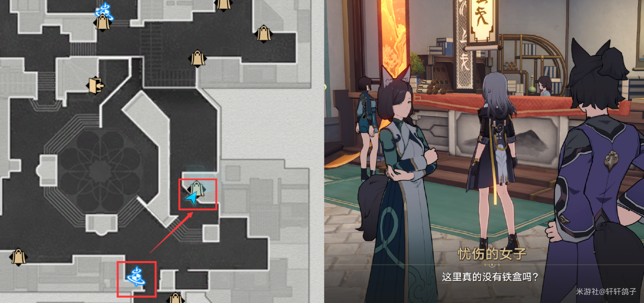 2)直接转身就能看到,和愁眉紧锁的年轻人对话,获得铁盒。