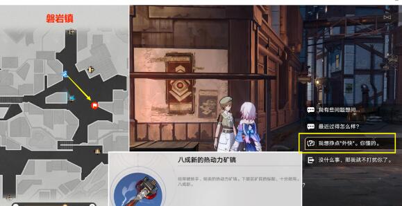 (1)首先去下图【磐岩镇】位置,与【安东尼娜】对话选择【我想挣点‘外快’。你懂的】,然后【安东尼娜】会给我们1个【八成新的热动力矿镐】