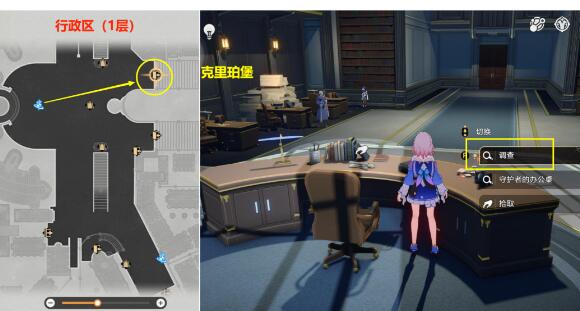 (1)去下图【行政区(1层)】的【克里珀堡】里面,在桌子上【调查】后,即可获得20冬城盾