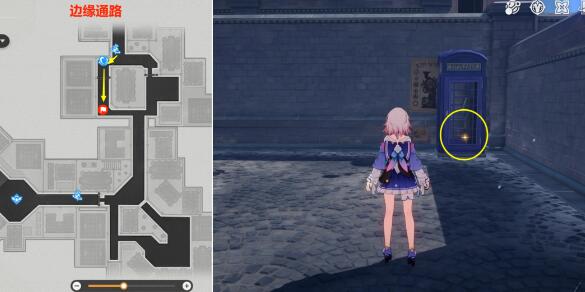 (2)然后再去下图【边缘通路】位置,在这里【电话亭】发光点也【调查】一下,对完话后,再获得20冬城盾
