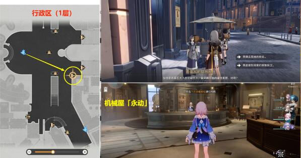 (1)首先去下图【行政区(1层)】的【机械屋「永动」】门口右边,与这个【希露瓦的狂热粉丝】对话,需要我们帮她拍一张【希露瓦】的照片