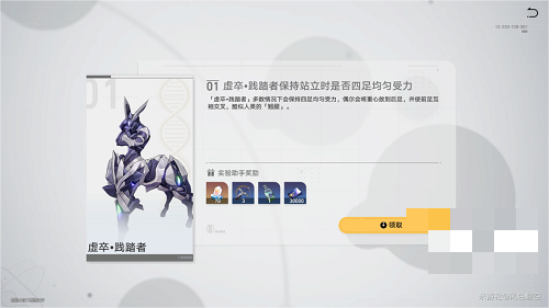 4、提交相应材料后会有相应的实验结果说明,并且能够领取70星琼和其他材料奖励。