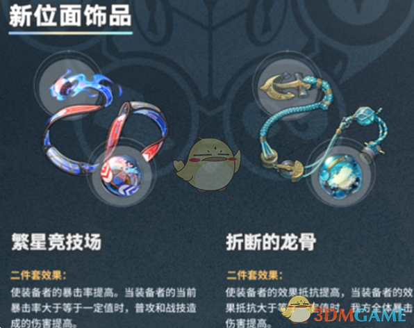 二件套会增强持有者的效果抵抗,等效果抵抗达到一定数值后,我方全体暴击伤害就会提高。