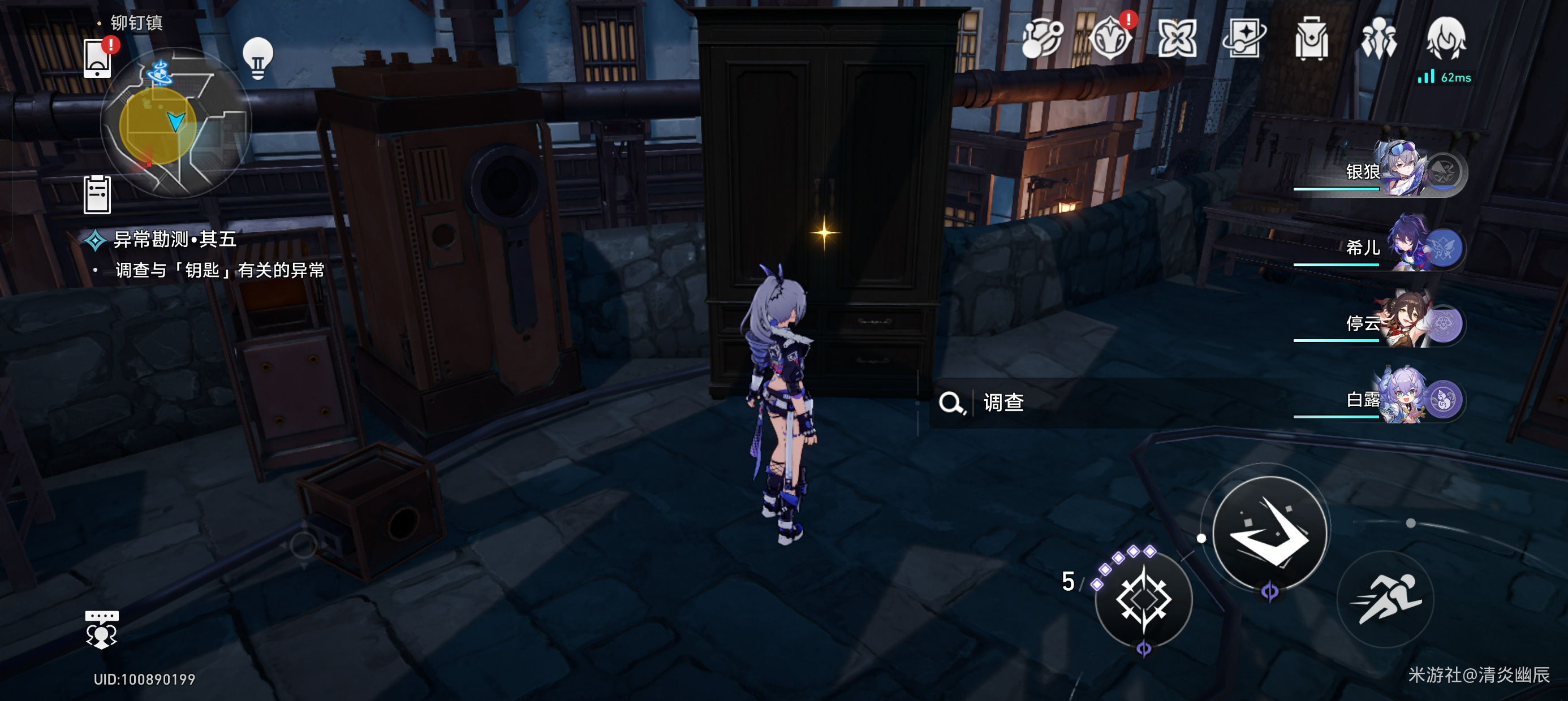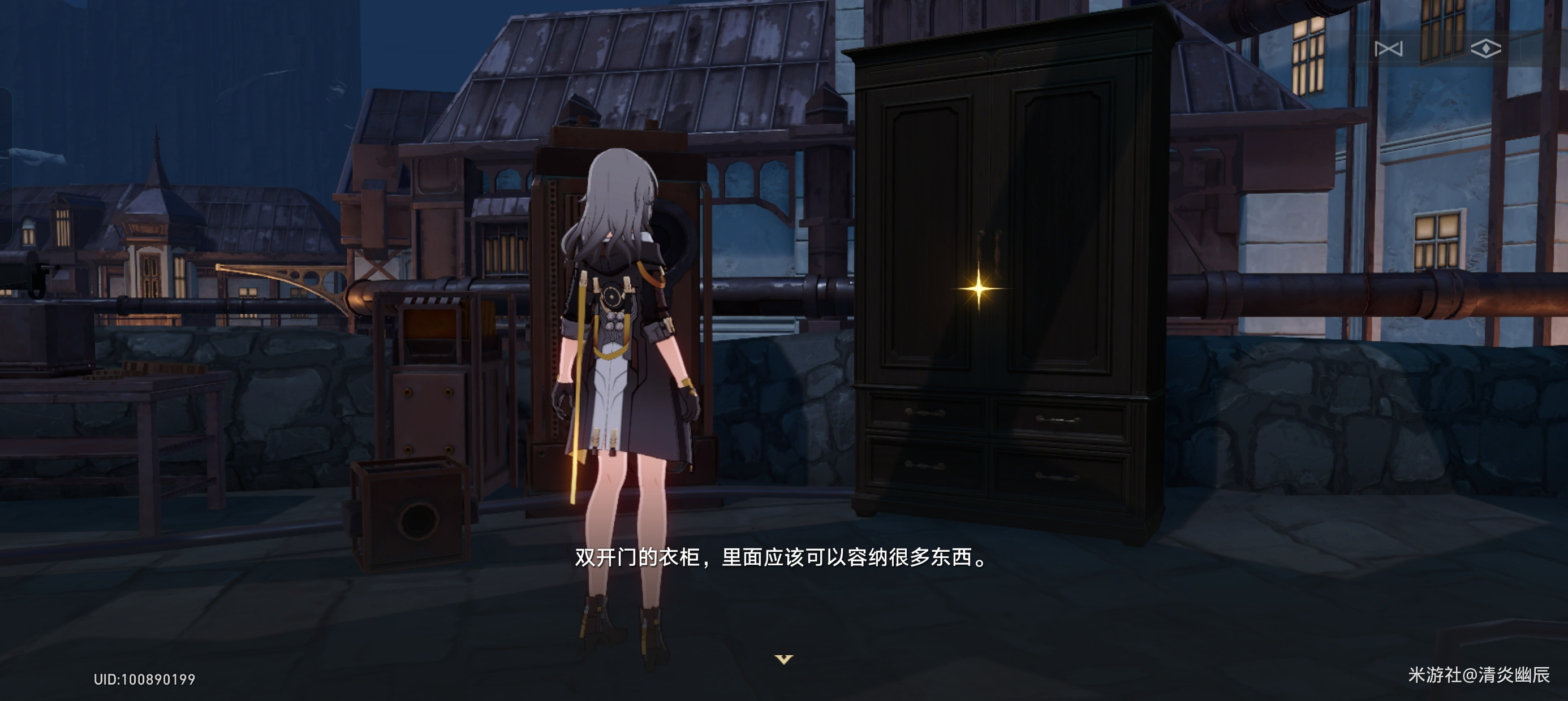 4、随后对衣柜右边位置的小柜子上的光点进行调查,之后会获得一把钥匙;