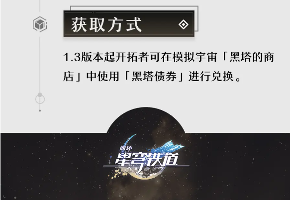1.3版本起开拓者可在模拟宇宙「黑塔的商店」中使用「黑塔债券」进行兑换。
