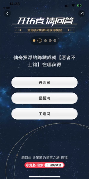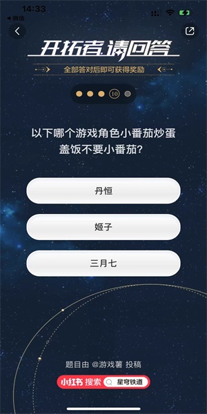 1、首先我们根据上面的分享出来的网址,就可以进入到开拓者请回答活动当中了,需要完成题目来可以获得到奖励。
