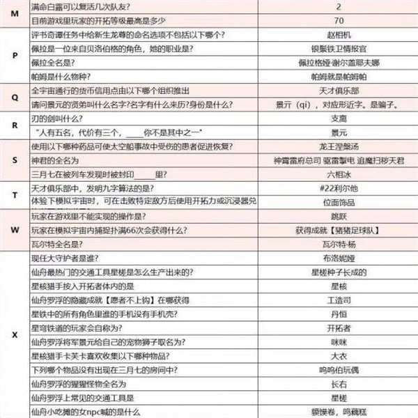 以上就是小编整理带来的《崩坏:星穹铁道》崩铁开拓者请回答答案一览攻略,更多相关游戏攻略,请关注手游网!