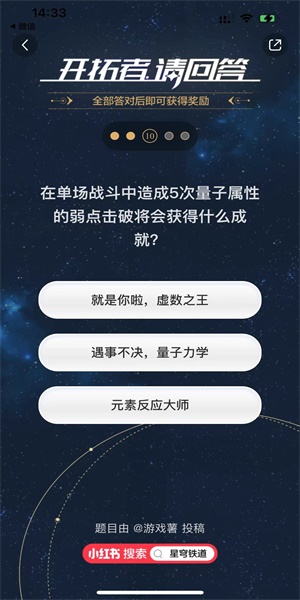 3、在单场战斗中造成5次量子属性的弱点击破将会获得什么成就?