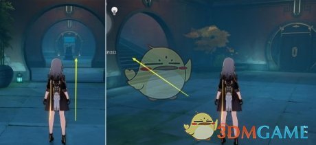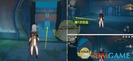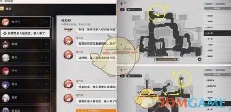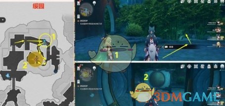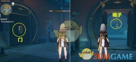 3、跟着“藿藿”来到下图1任务点后,再按照路线去2任务点,然后“调查”2任务点“镜子”后,会进入后面的迷宫副本。