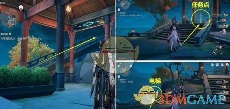 22、进入副本后,从旁边楼梯上去,去上面任务点对话,然后再和【雪衣】对完话后,从“雪衣”左边下去,坐下面电梯继续下去。