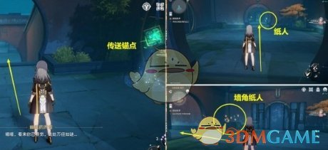 8、进来后,右边有个传送锚点,接着继续前面下去,下去后,过完剧情,往前走,经过前面有“纸人”的房间后,追踪任务去前面”墙角纸人“任务点”调查“,然后再从“墙角纸人”左边进去。