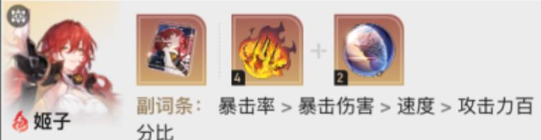 姬子:副词条:暴击率>暴击伤害>速度>攻击力百分比