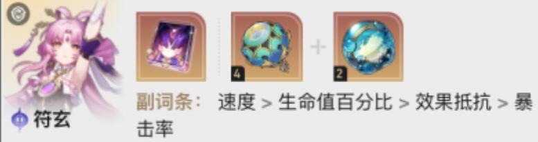 符玄:副词条:速度>生命值百分比>效果抵抗>暴击率