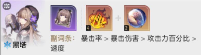 黑塔:副词条:暴击率>暴击伤害>攻击力百分比>速度