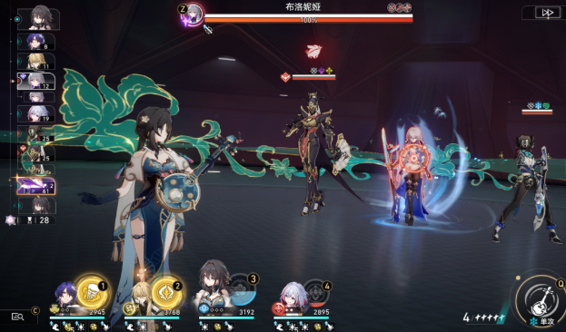 5、布洛妮娅只有一个特性就是场上有其他敌人存在时,获得弱点保护。无法削减韧性并不是什么很头大的事情,只是单纯看布洛妮娅的机制没必要先集火其他敌人。但布洛妮娅身旁站着的可是金人勾魂使,拥有当下版本最恶心的机制,这下就不得不先杀金人勾魂使了。