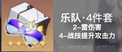 乐队四件套(主属性为雷元素和战技伤害)+封印站两件套(主属性为攻击力):此套装着重提升角色的输出能力。