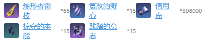 5、60级:践踏的意志*6、炼形者雷枝*20、信用点*80000