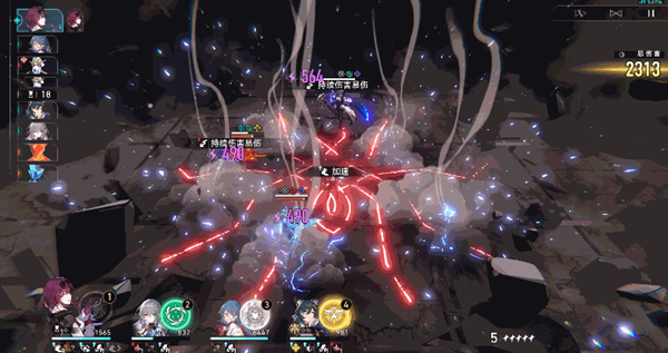 2、战技-月光摩挲连绵:对指定敌方单体造成雷属性伤害,同时对其相邻目标造成一定的雷属性伤害,若指定敌方单体处于持续伤害状态,其当前承受的所有持续伤害立即产生相当于原伤害60%的伤害。
