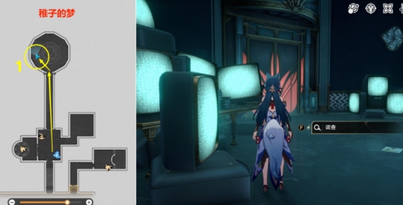 (1)第1处,在【稚子的梦】下图多个电视机位置【调查】
