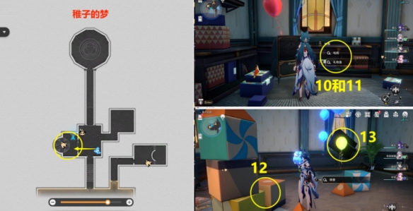 (8)第10处、第11处、第12处、第13处,分别和【稚子的梦】下图位置房间里的【电视】【礼物盒】【积木】【钢琴】交互