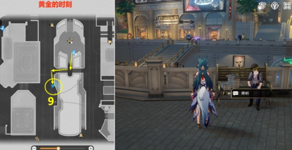 (7)第9处,在【黄金的时刻】下图报纸位置处【旁听】