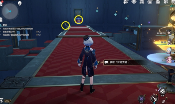 (1)先去中央酒塔的位置,补充梦泡能量,再去拿战利品1