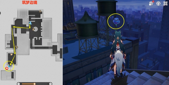 来到【筑梦边境】下图位置 ,打了空中蓝色气球后,即可获得该成就