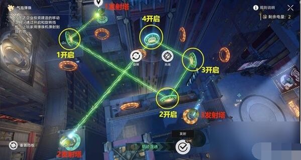 完成上图草操作进入【2发射塔】后,先点击一下左下【重置挡板】,再开始下图的解密