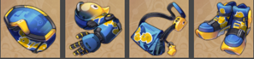 套装部件:信使的全息目镜、信使的百变义手、信使的密信挎包、信使的酷跑板鞋