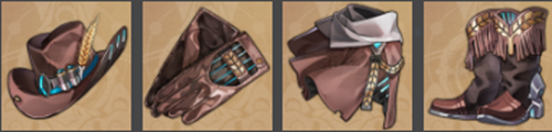 套装部件:快枪手的野穗毡帽、快枪手的粗革手套、快枪手的猎风披肩、快枪手的铆钉马靴