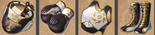 套装部件:拳王的冠军护头、拳王的重炮拳套、拳王的贴身护胸、拳王的弧步战靴