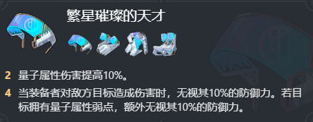 4、两件套提高量子属性伤害,四点套可以无视对方防御力,雪衣作为量子属性角色可以吃满效果。