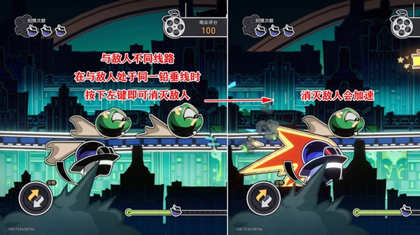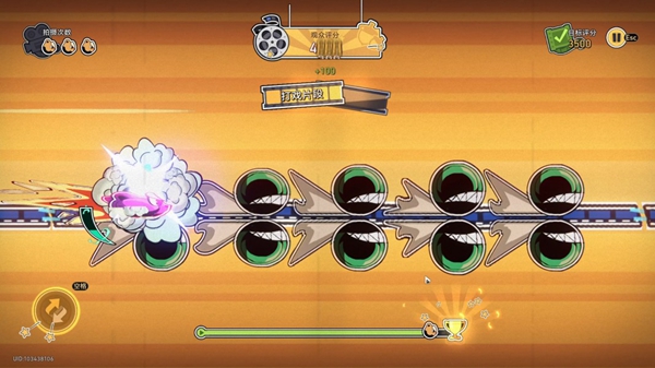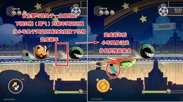 3、判定成功:判定成功小车会有明显的加速,且周身泛光(无敌),并积攒能量条。