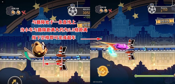 2、超车判定:超车判定约为路障前2.5格左右距离,在此距离按下(或长按)空格即可完成超车。