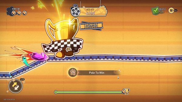 6、判定成功:判定成功小车会有明显的加速,且周身泛光(无敌),并积攒能量条。
