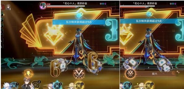 2、只要至少2个骰子能同时打出6点,即可获得成就《双六》,建议在第2阶段做,会4个角色都摇骰子并且有4个骰子,第1阶段这个还真的不好同时打出2个6,只能看运气多打了。