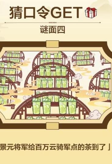 第四关:口令提示:景元将军给百万云骑将军点的茶到了!